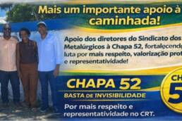 Mostrar Todas Sem categoria Destaque Notícias Documentos Convenções Coletivas Editais Boletim DestaqueNotícias 12 de março de 2026Sindicato dos Metalúrgicos da Bahia declara apoio à Chapa 52 nas eleições do CRT-BA DestaqueNotícias 12 de março de 2026Metalúrgicos da Bahia prestigiam os 17 anos da Ouvidoria Cidadã da Defensoria Pública DestaqueNotícias 9 de março de 2026Parceria Garantida: Sindicato dos Metalúrgicos e Unijorge Firmam Convênio com Descontos Exclusivos DestaqueNotícias 8 de março de 20268 de Março: A Força da Mulher Metalúrgica Construindo o Futuro da Bahia Sem categoriaDestaqueNotícias 26 de fevereiro de 2026ASSEMBLEIA EXTRAORDINÁRIA NA TUBONEWS ACONTECE AMANHÃ: PARTICIPAÇÃO DA CATEGORIA É FUNDAMENTAL DestaqueNotícias 25 de fevereiro de 2026TERMO ADITIVO GARANTE REAJUSTES, NOVOS PISOS E BENEFÍCIOS PARA TRABALHADORES DA REFRIGERAÇÃO E CLIMATIZAÇÃO NA BAHIA