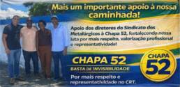 Sindicato dos Metalúrgicos da Bahia declara apoio à Chapa 52 nas eleições do CRT-BA